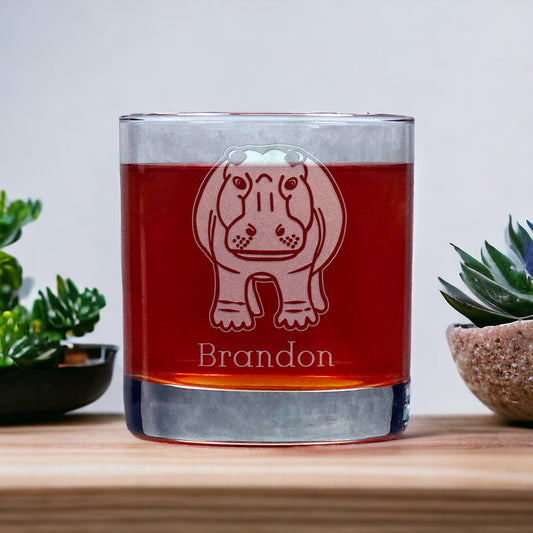 Hippo 11oz Engraved Whiskey Glass - Hippopotamus Etched Whiskey Glass