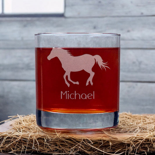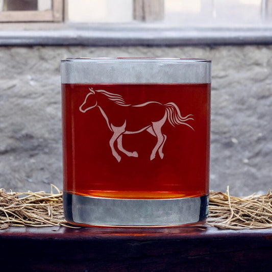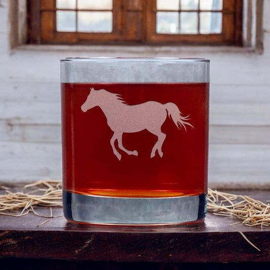 Running Horse Engraved 11oz Whiskey Glass - Design 2 - Deeply Etched Rocks Glass