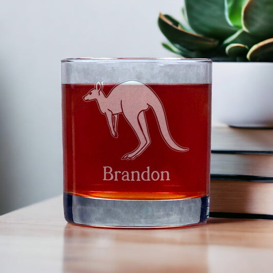 Kangaroo Etched 11oz Whiskey Glass - Free Personalization