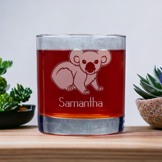 Koala Engraved 11oz Whiskey Glass - Deeply Etched - Personalized Gift