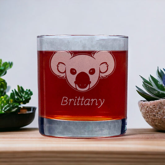Koala Head Engraved 11oz Whiskey Glass - Deeply Etched - Personalized Gift