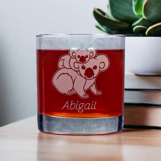 Koala and Baby Engraved 11oz Whiskey Glass - Deeply Etched - Personalized Gift