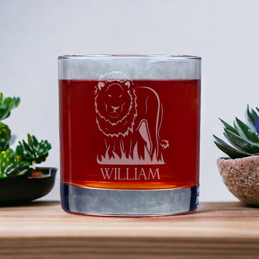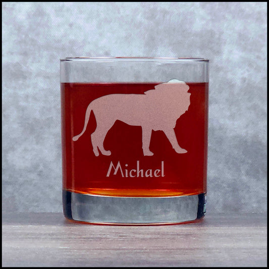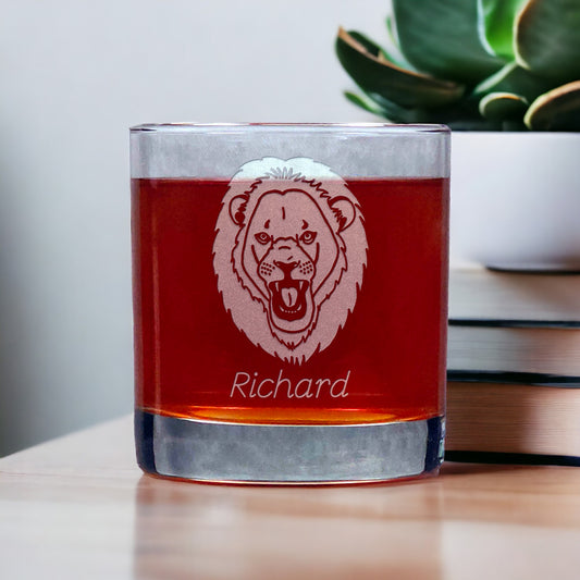 Lion Engraved 11oz Whiskey Glass - Design 4 - Deeply Etched Glass