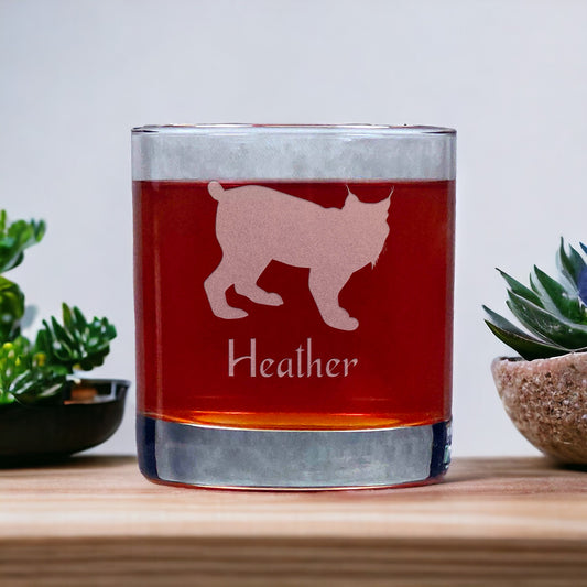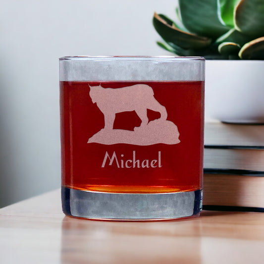 Lynx Engraved 11oz Whiskey Glass - Design 2 - Deeply Etched Glass