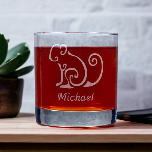 Monkey Engraved 11oz Whiskey Glass - Deeply Etched Glass