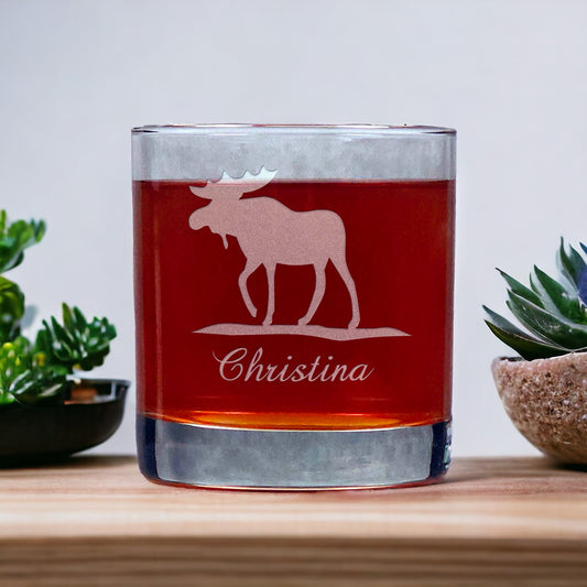 Moose Engraved 11oz Whiskey Glass - Design 2 - Deeply Etched Glass