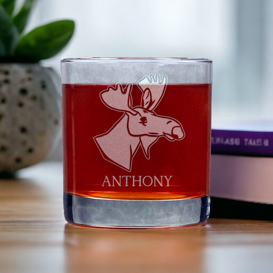 Moose Head Engraved 11oz Whiskey Glass - Deeply Etched Rocks Glass