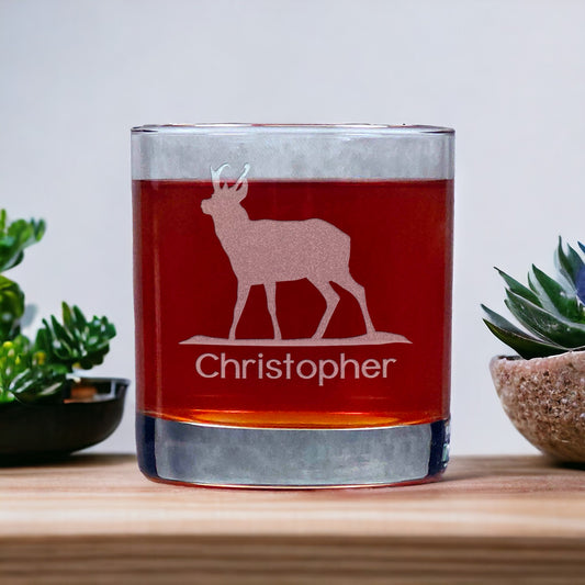 Pronghorn 11oz Whiskey Glass - Deeply Etched Rocks Glass - Free Personalization