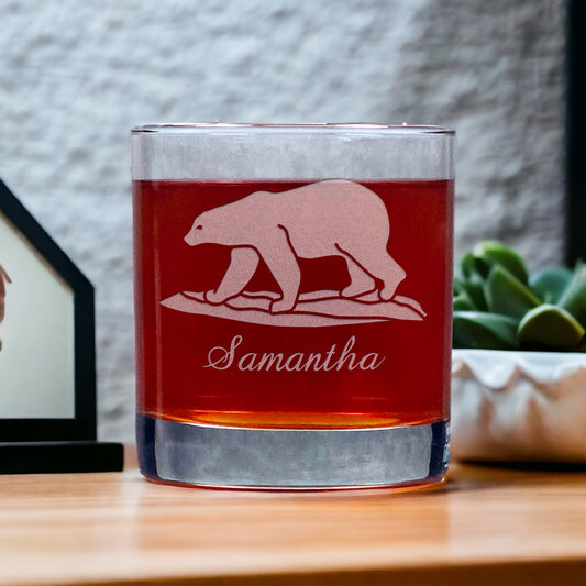 Polar Bear Engraved 11oz Whiskey Glass - Deeply Etched Rocks Glass