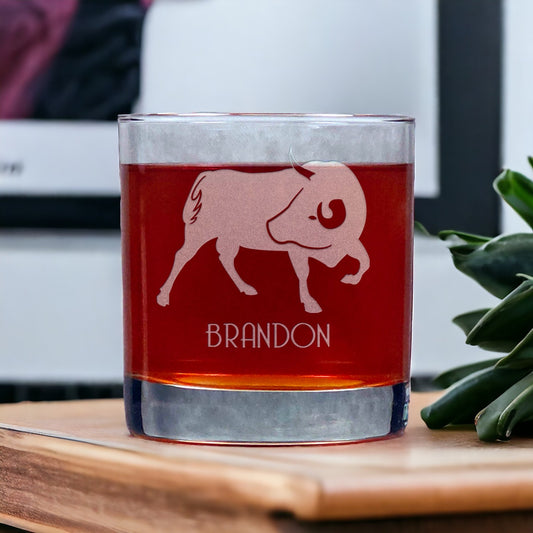 Bull Etched 11oz Whiskey Glass - Deeply Etched Rocks Glass