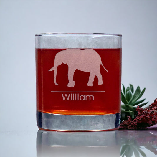 Elephant Etched 11oz Whiskey Glass - Design 5 - Free Personalization