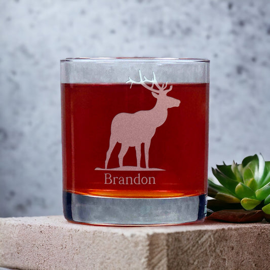 Elk Engraved 11oz Whiskey Glass - Design 5 - Personalized Rocks Glass