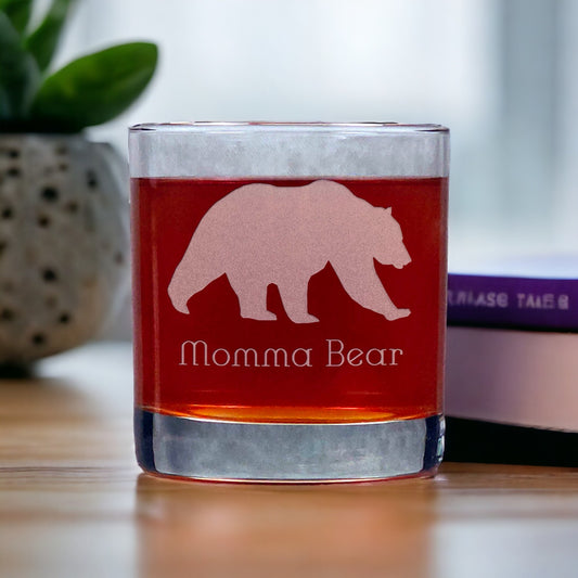Bear Etched 11oz Whiskey Glass - Design 5 - Deeply Etched Lowball Glass
