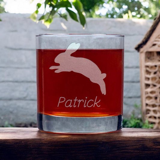 Jumping Rabbit Engraved 11oz Whiskey Glass - Personalized Gift