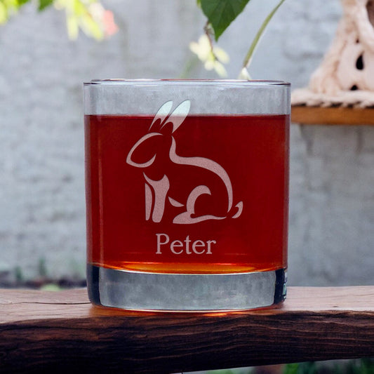 Sitting Rabbit Engraved 11oz Whiskey Glass - Personalized Gift