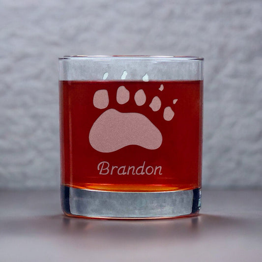 Bear Track Etched 11oz Whiskey Glass - Personalized Gift
