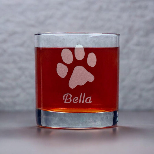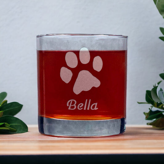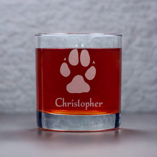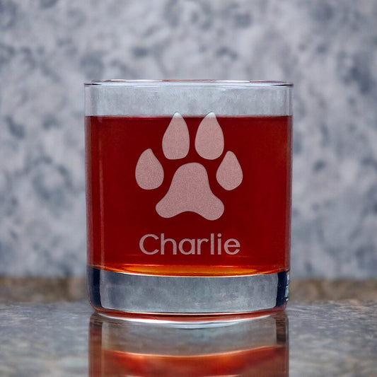 Dog Paw Etched 11oz Whiskey Glass - Personalized Gift