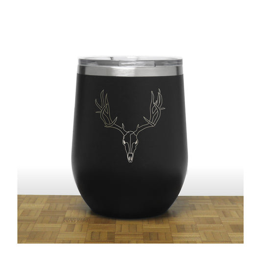 Deer Skull and Antlers 12 oz Insulated Stemless Wine Tumbler Stainless Steel