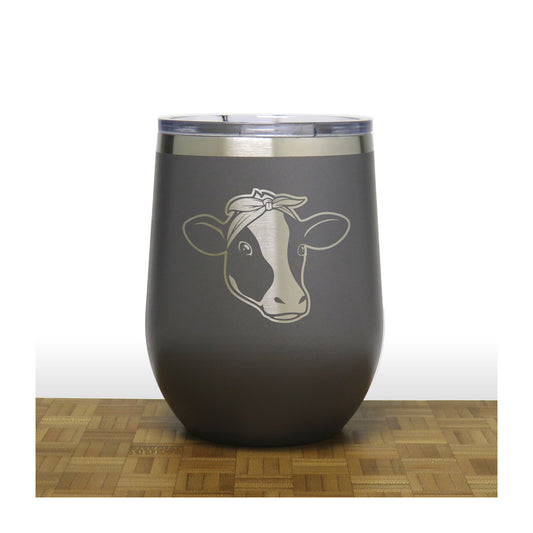 Cow with Bandana 12 oz Insulated Stemless Wine Tumbler Stainless Steel