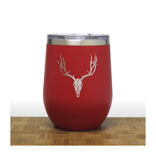 Deer Skull and Antlers 12 oz Insulated Stemless Wine Tumbler Stainless Steel - Design 2