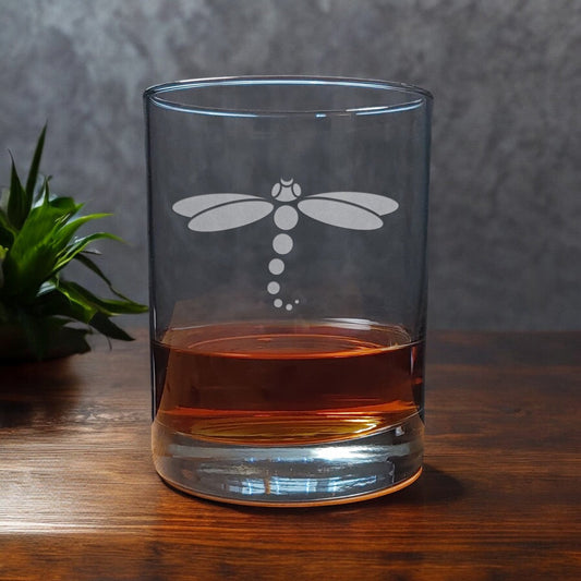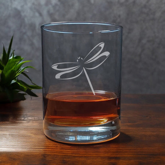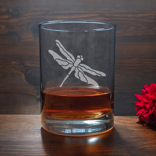 Dragonfly Engraved 13oz Whiskey Glass, Gift for Wedding, Engagement, or Anniversary Gift, Deeply Etched Rocks Glass