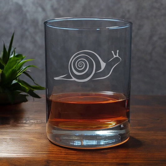 Snail Engraved 13oz Whiskey Glass, Deeply Etched Rocks Glass