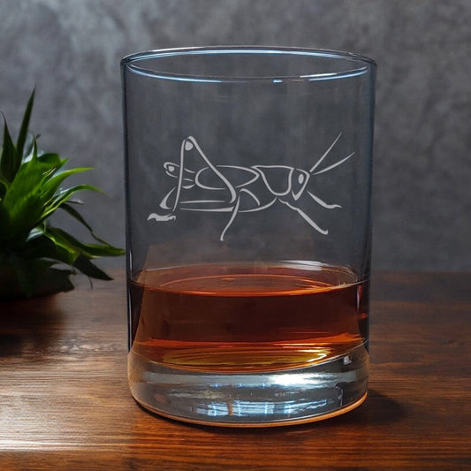 Grasshopper Engraved 13oz Whiskey Glass, Gift for Gardener, Etched Rocks Glass