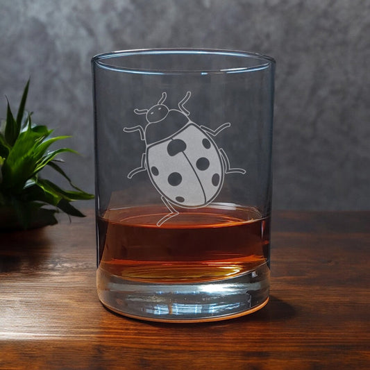 Ladybug Engraved 13oz Whiskey Glass - Deeply Etched Insect Spirit Glass