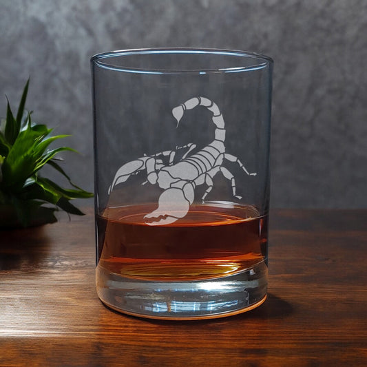 Scorpion Etched Whiskey Glass - 13oz Insect Rocks Tumbler Gift for Scotch Lovers