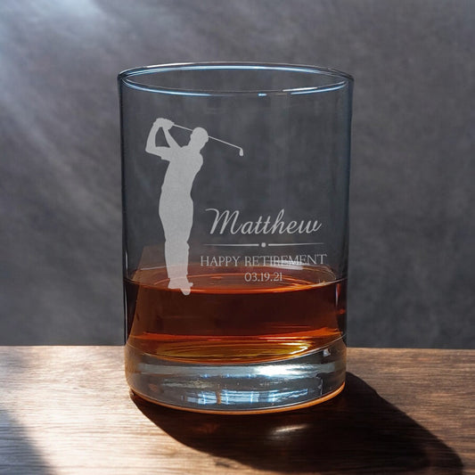 Golfer 13oz Engraved Whiskey Glass - the Perfect Retirement Personalized Gift