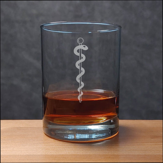 Rod of Asclepius 13oz Engraved Whiskey Glass - Medical Personalized Gift