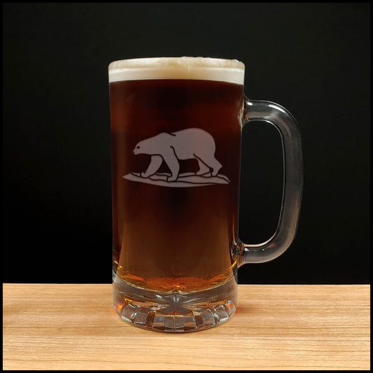 Polar Bear 16oz Engraved Beer Mug - Etched Animal Personalized Gift - Bear Beer Glass