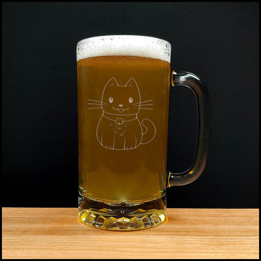 Cute Cat 16oz Engraved Beer Mug - Cat Beer Glass - Animal Etched Personalized Gift