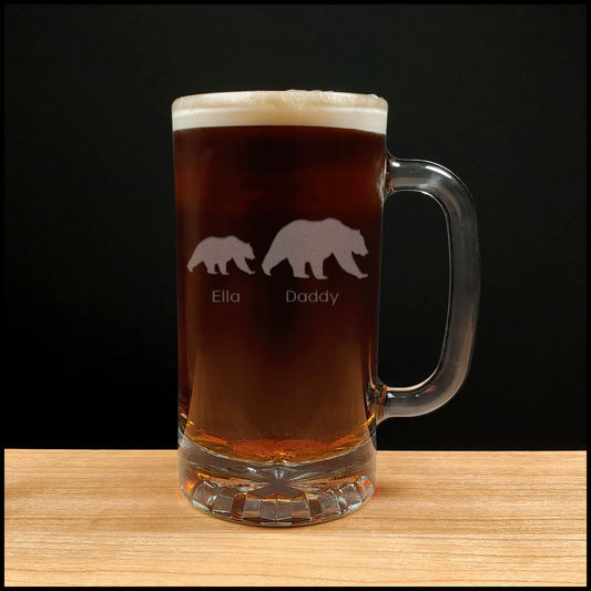 Papa Bear and Cub 16oz Engraved Beer Mug - Mama and Baby Bear