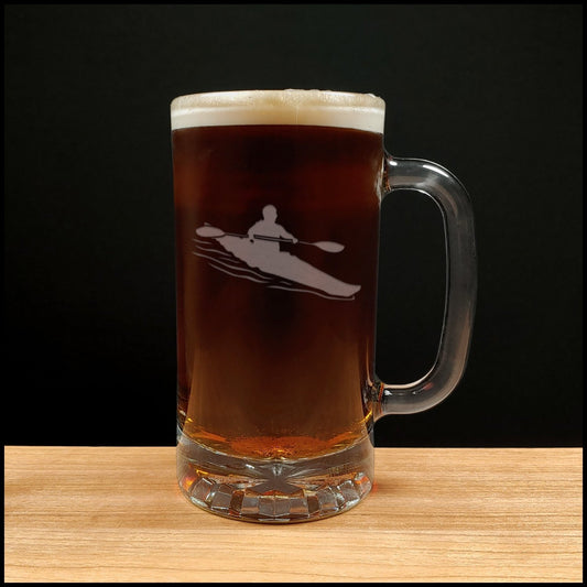 Kayaker 16oz Engraved Beer Mug - Personalized Gift - Kayak Custom Beer Glass