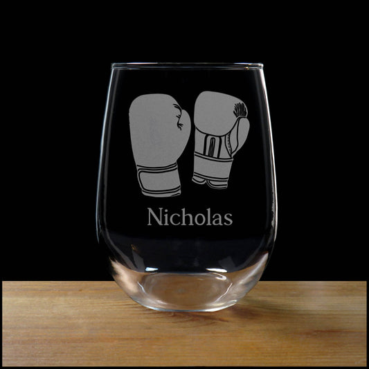 Boxing Gloves Stemless Wine Glass - Boxer Deeply Engraved 17oz Glass