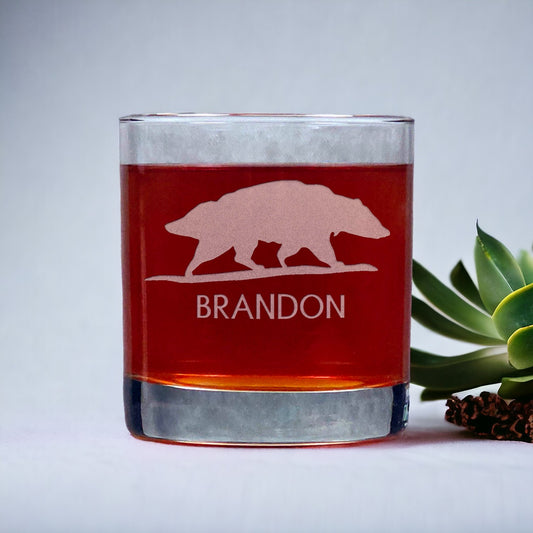 Bear Etched 11oz Whiskey Glass - Personalization Available