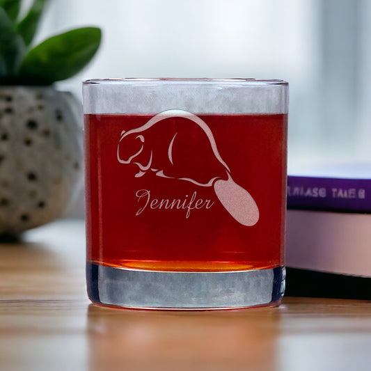 Beaver Etched 11oz Whiskey Glass - Design 4