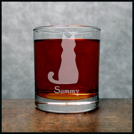 Sitting Cat Engraved 11oz Whiskey Glass - Design 5 - Free Personalization