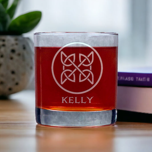 Celtic Design Etched 11oz Whiskey Glass - Personalize with a First Name or Family Name