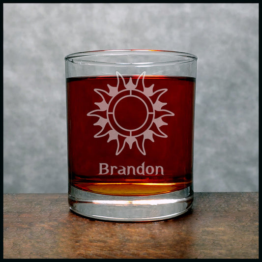 Sun Engraved 11oz Whiskey Glass - Design 5 - Free Personalization