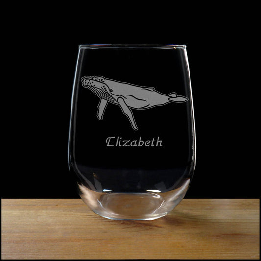 Humpback Whale Stemless Wine Glass - Deeply Etched 17oz Glass