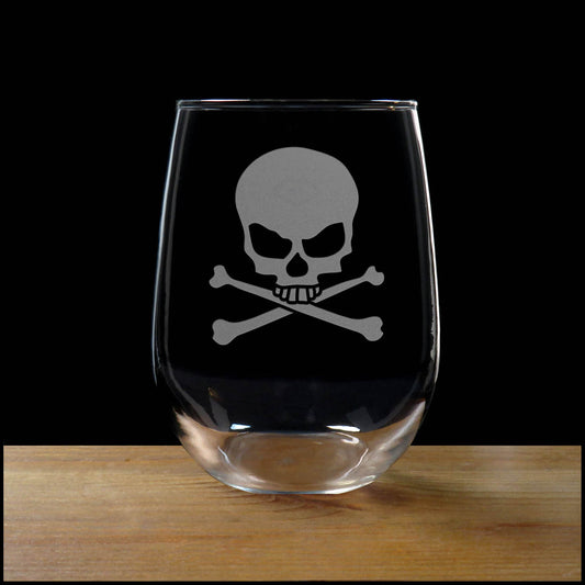Skull and Crossbones 17oz Stemless Wine Glass - Personalized Gift