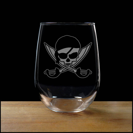 Pirate Skull and Crossed Swords 17oz Stemless Wine Glass - Personalized Gift