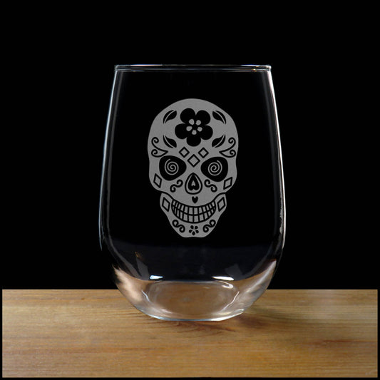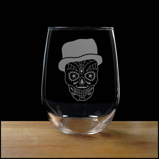 Male Sugar Skull 17oz Stemless Wine Glass - Sugar Skull Personalized Gift