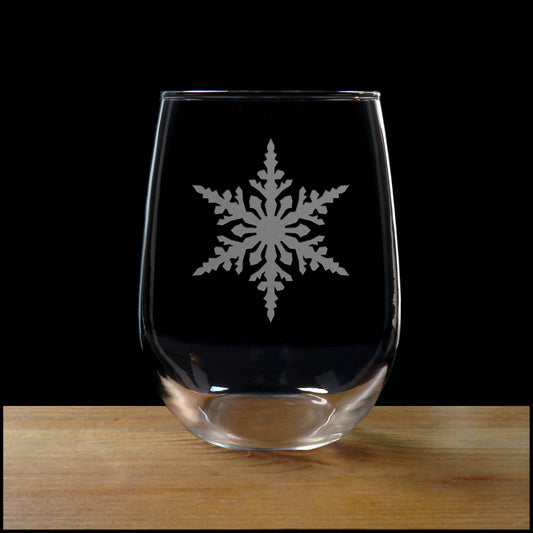 Snowflake Deeply Etched 17oz Stemless Wine Glass - Design 4 - Personalization Option available