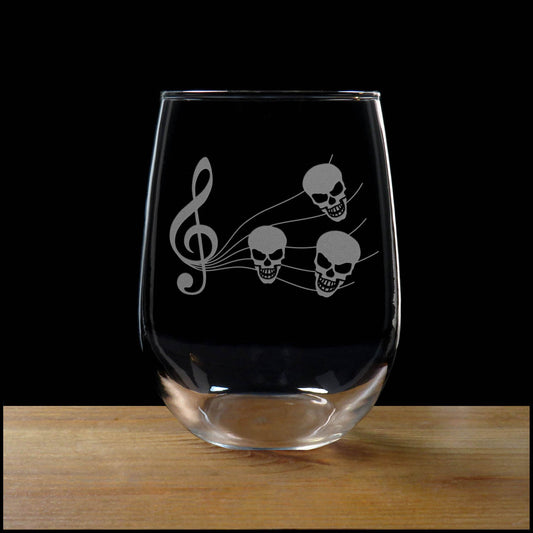 Music Staff with Skulls Music Notes 17oz Stemless Wine Glass - Personalized Gift
