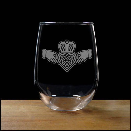 Celtic Claddagh 17oz Deeply Engraved Stemless Wine Glass