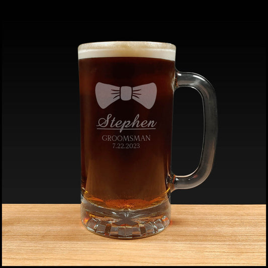 Bow Tie 16oz Engraved Beer Mug for the Groom, Groomsman, Best Man - Wedding Party Gift