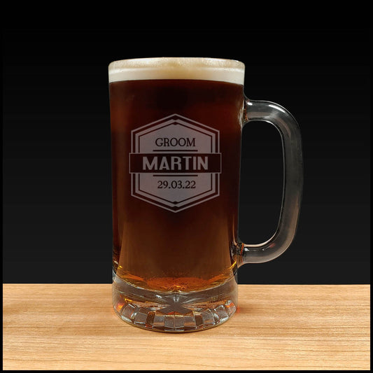 Groom 16oz Deeply Engraved Beer Mug - Wedding Party Personalized Gift